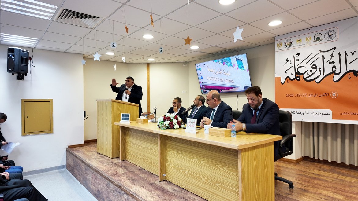أطلقت كلية الشريعة فعالية كتابة المصحف الشريف بالتعاون مع ملتقى فلسطين لكتابة القرآن الكريم يوم الاثنين 2025/12/22م وذلك برعاية عطوفة محافظ محافظة نابلس وبالشراكة مع وزارة الأوقاف والشؤون الدينية ووزارة التربية والتعليم العالي ووزارة الثقافة.