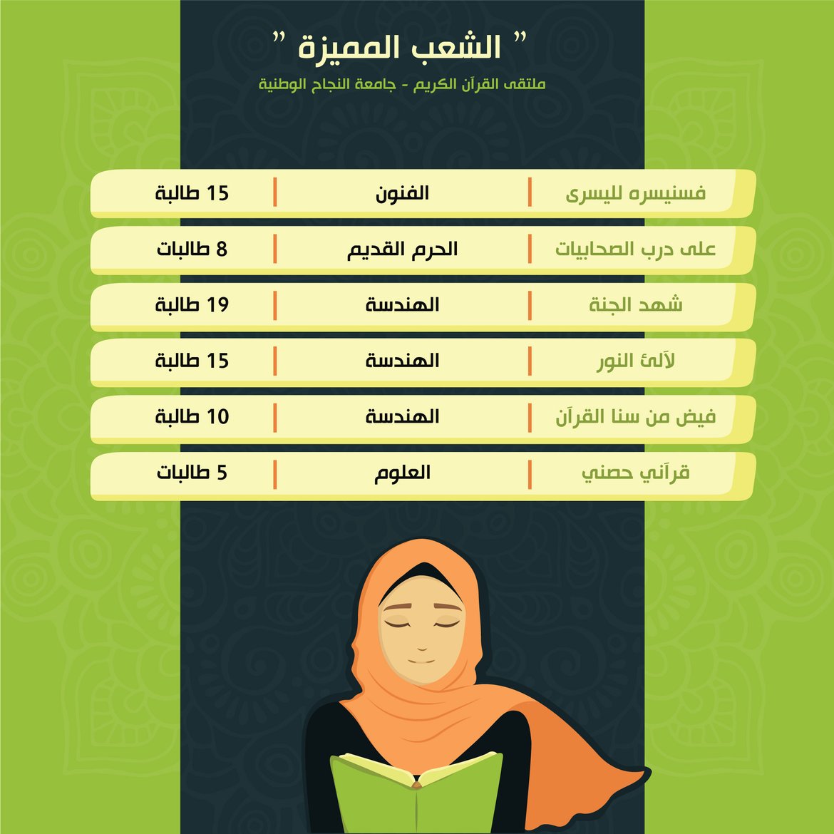 حلقات التحفيظ، جاءت نتائج حصاد الشعب المميزة للأسبوع الثالث والرابع من الفصل الصيفي للعام 2020 كالتالي: