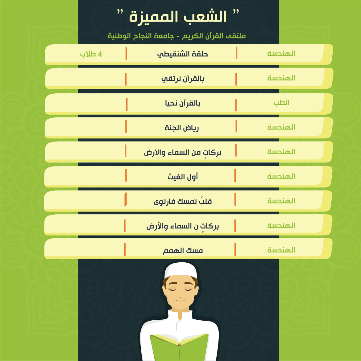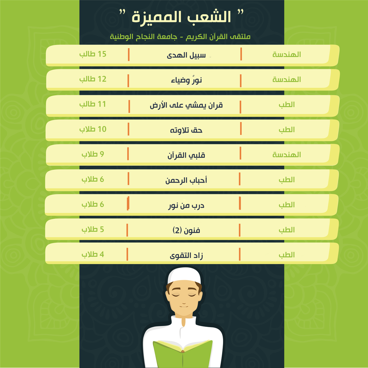 ضمن أنشطة الملتقى الهادفة لرعاية حفظ القرآن الكريم ضمن حلقات التحفيظ، جاءت نتائج حصاد الشعب المميزة للأسبوع السادس من الفصل الأول 2020/2021 كالتالي:
