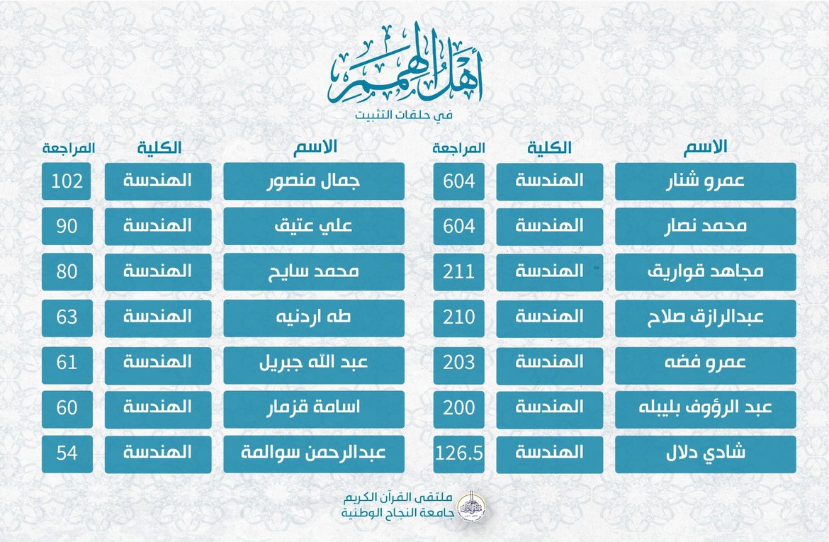 حصاد أهل الهمم في حلقات الحفظ العادي: نتائج الأسبوع الرّابع عشر للفصل الدّراسيّ الأوّل للعام 2025-2026