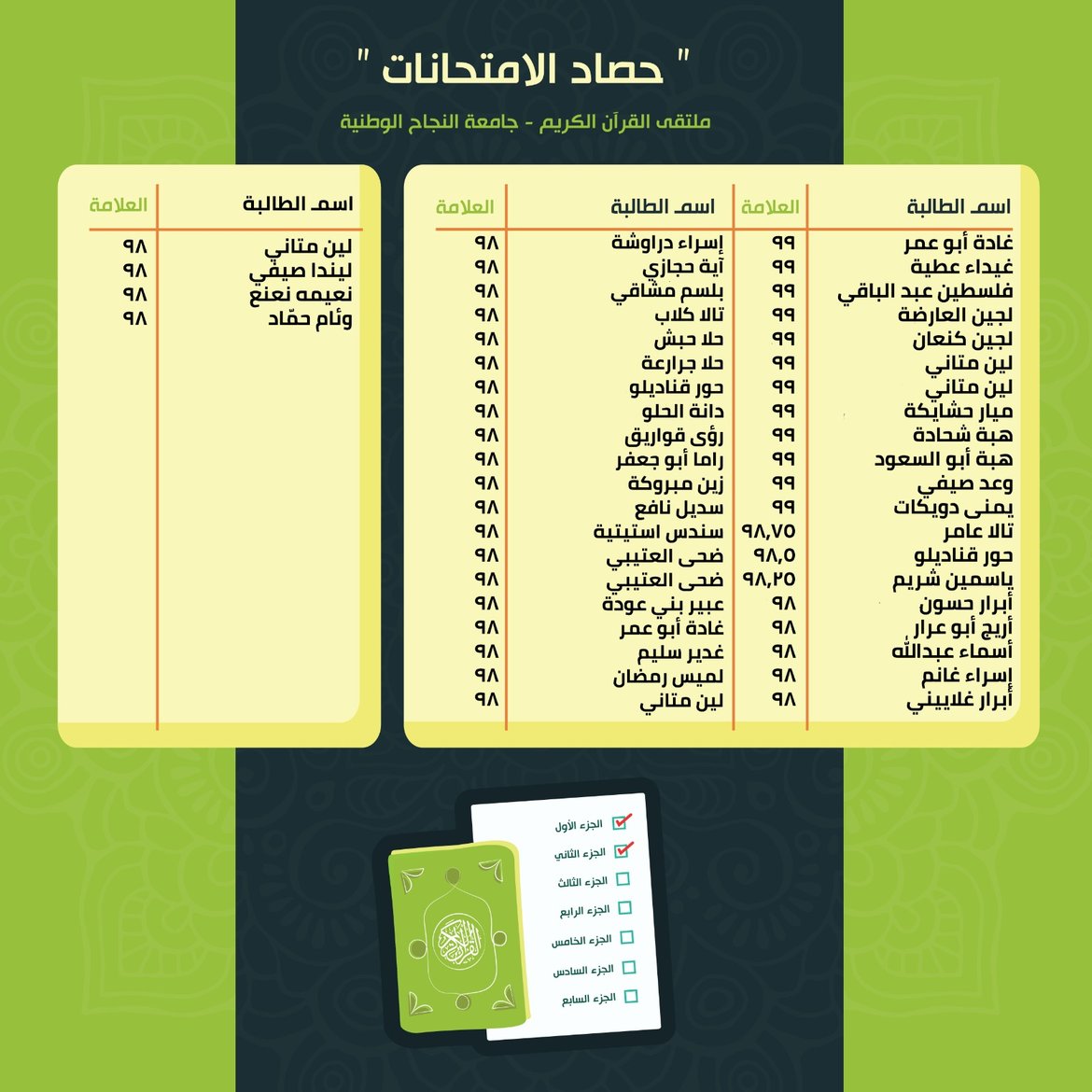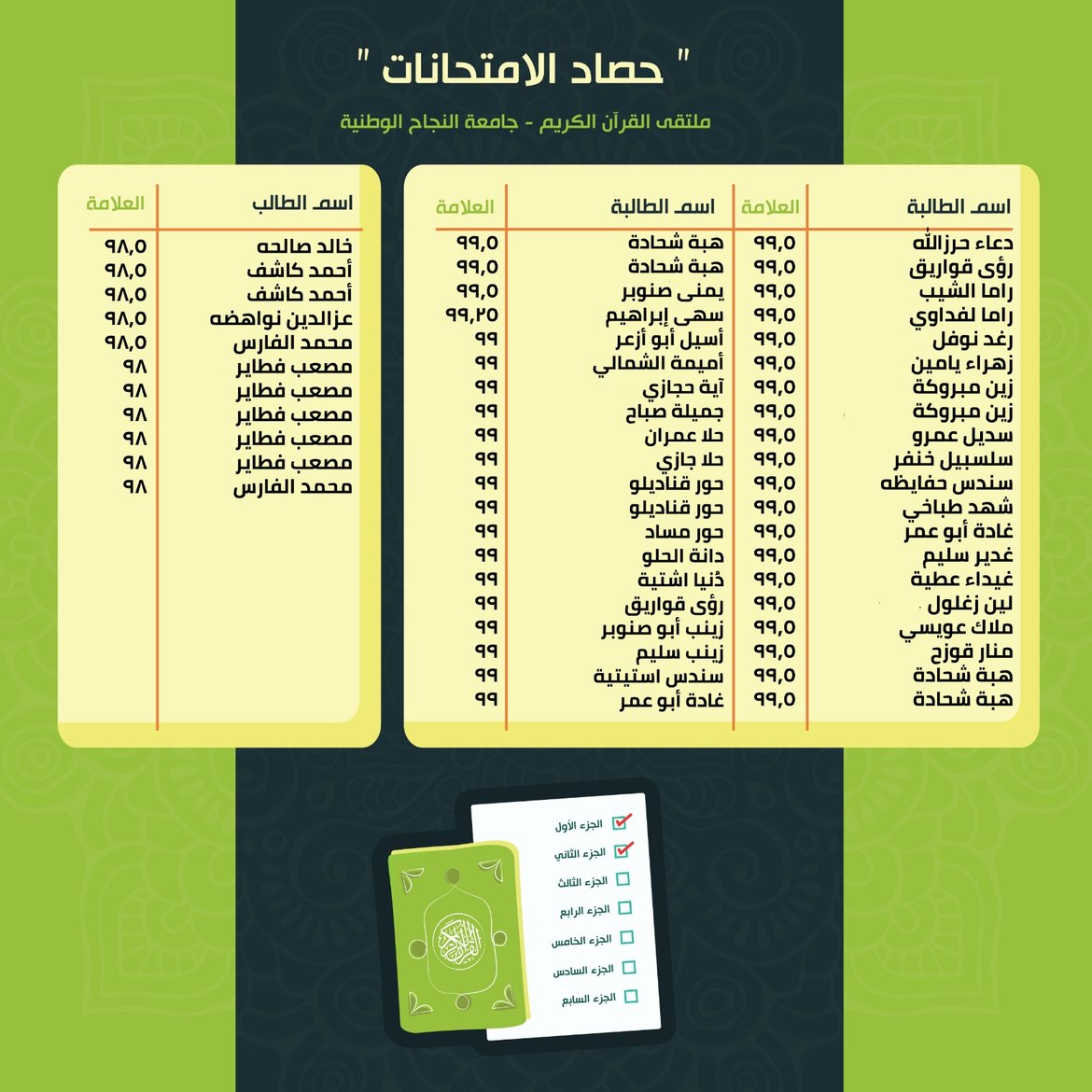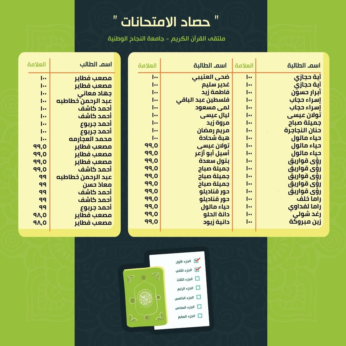 حصاد الامتحانات: نتائج الأسبوع الثّالث عشر من الفصل الدّراسيّ الأوّل للعام 2025-2026