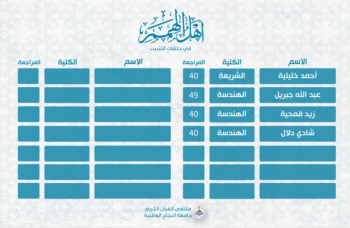 حصاد أهل الهمم في حلقات التّثبيت: نتائج الأسبوع الثّالث للفصل الدّراسيّ الثّاني للعام 2025-2026