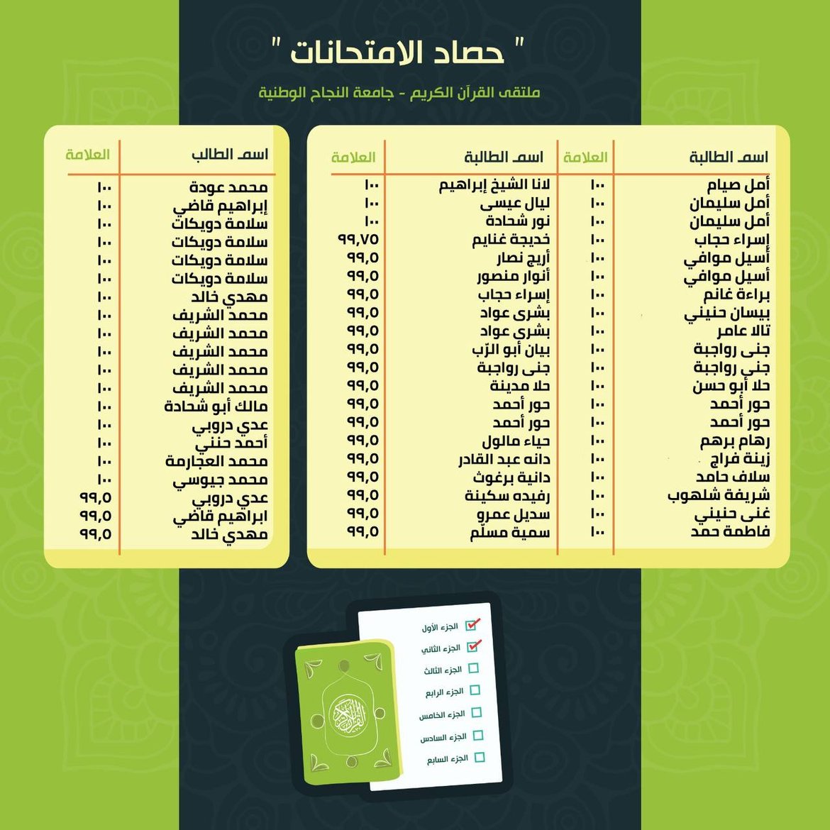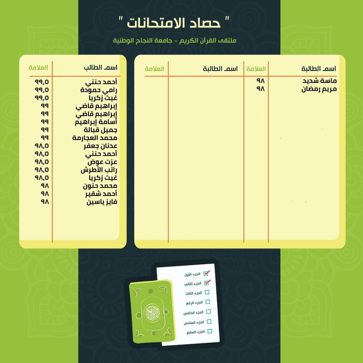 حصاد الامتحانات: نتائج الأسبوع الخامس من الفصل الدّراسيّ الثّاني للعام 2025-2026