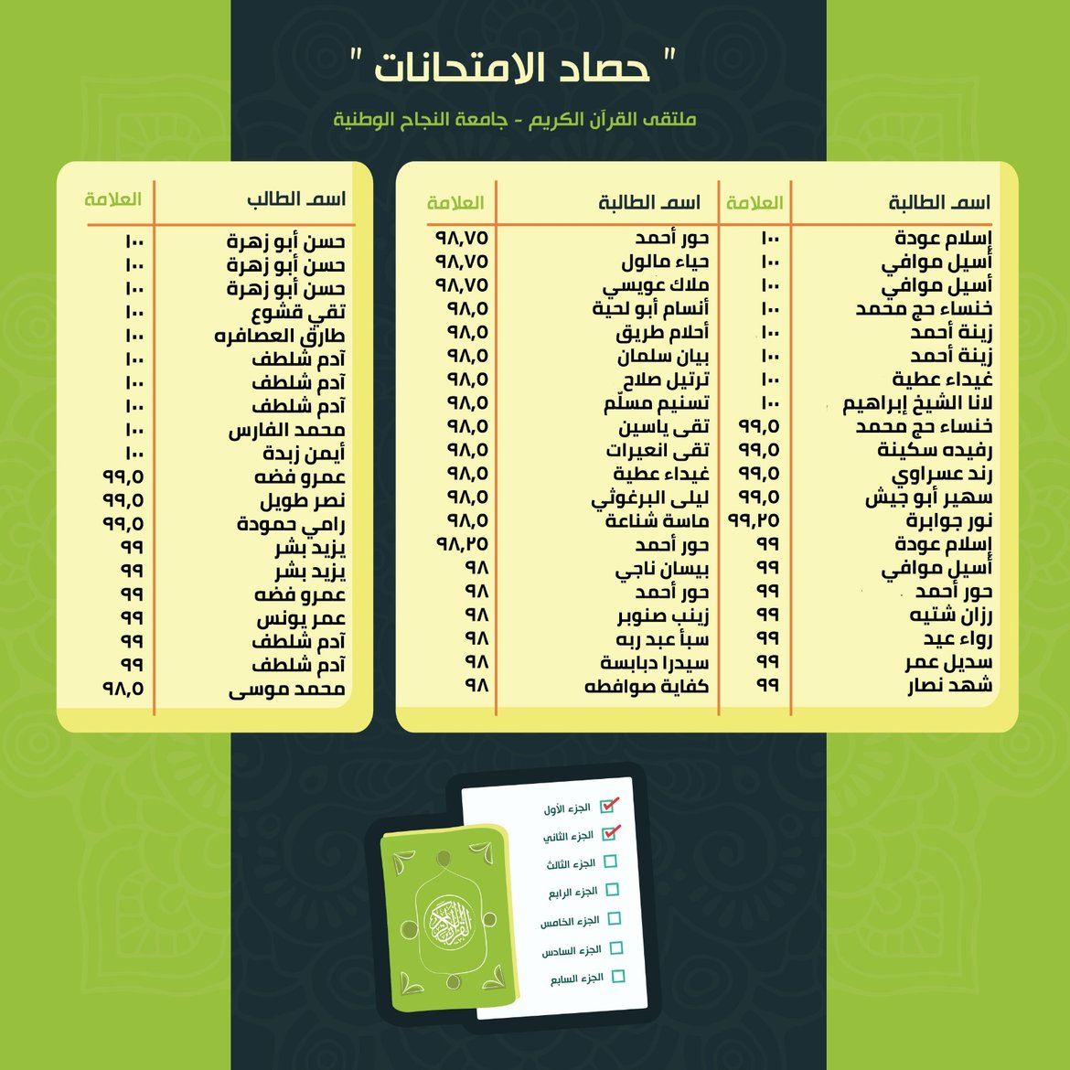حصاد الامتحانات: نتائج الأسبوع التّاسع من الفصل الدّراسيّ الثّاني للعام 2025-2026