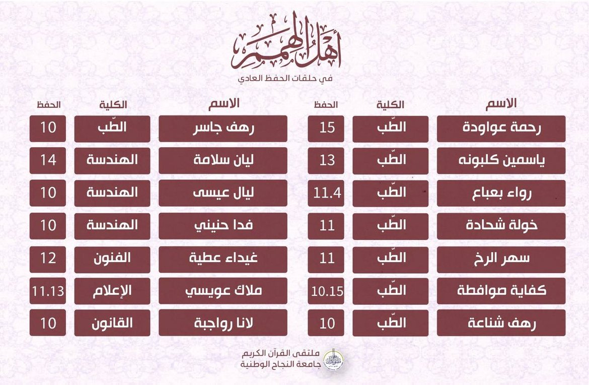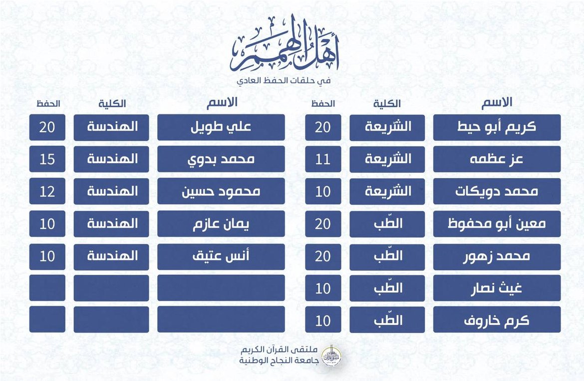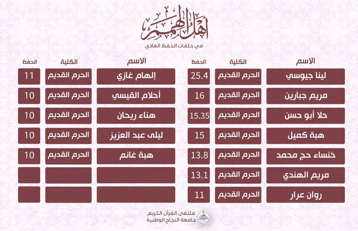 حصاد أهل الهمم في حلقات الحفظ العادي: نتائج الأسبوع التّاسع للفصل الدّراسيّ الثّاني للعام 2025-2026